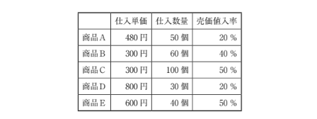 - 商品E:600 ÷ (1 − 0.50) = 1,200円