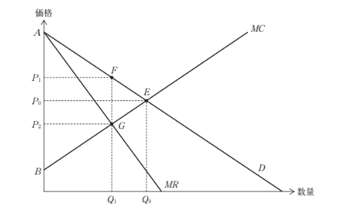 独占の利潤最大化条件はMR=MCで、図の交点がQ1。