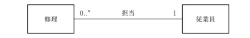修理側の「0..*」は、従業員1人が0件以上の複数修理を担当できることを示す。複数担当不可ではない。