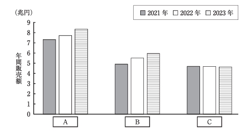 Bをコンビニ、Cを百貨店とする並びは、販売規模の相対関係が不自然。